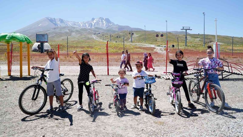 Yaz mevsiminde bisiklet, yürüyüş, tırmanış, gibi tüm dağ ve tabiat sporları için geniş imkânların sunulduğu Erciyes, her yıl yüzlerce amatör ve profesyonel bisikletçiyi de ağırlıyor. Ülkemizde ilk kez Erciyes Dağı’nda inşa edilen ve downhill, mtb gibi tüm dağ bisikleti kullanıcıları için farklı zorluk derecelerinde parkurların bulunduğu Erciyes’te çocuklar için de özel bisiklet ve aktivite parkı oluşturuldu. Kayseri Büyükşehir Belediyesi Erciyes A.Ş. tarafından 2 bin 200 metrede bulunan Tekir bölgesine kurulan bisiklet ve oyun parkı, çocukların hem eğlenmesi hem zihinsel ve fiziki gelişimi hem de iyi bir bisiklet sporcusu olarak yetişmesi için planlandı. Yaklaşık 1000 metrekarelik bir alan üzerine kurulan ve etrafı çevrilerek güvenli bir ortam oluşturulan bisiklet parkı, çocukların doyasıya vakit geçirmesine ortam hazırlıyor. Erciyes’te 09:00-17:00 saatleri arasında hizmet vermekte olan bisiklet eğitim alanı 4-16 yaş aralığındaki çocukları kabul ediyor. Çocuklar haftanın 7 park içerisinde bulunan bisikletlerden bedelsiz faydalanabildikleri gibi kendi bisikletlerini de getirip kullanabiliyorlar.