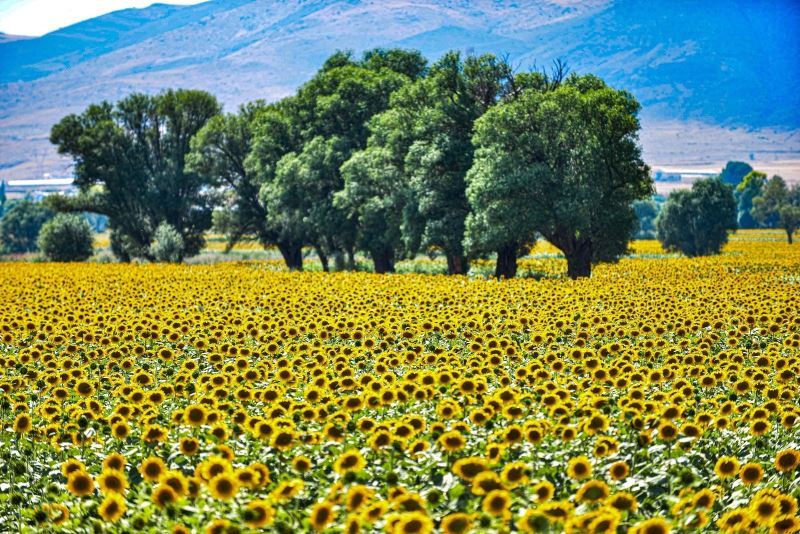Sarısı gün ışığıyla buluşan ayçiçeği tarlaları görenleri büyülüyor