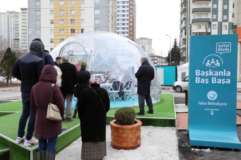 Talas Belediye Başkanı Mustafa Yalçın tarafından Türkiye’de bir ilke imza atılarak Mevlana Mahallesi Meydanında başlatılan “Şeffaf Oda’da Başkanla Baş Başa” uygulaması renkli görüntülere sahne oluyor.