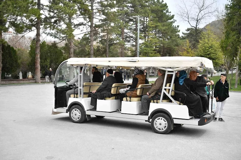 Kayseri Büyükşehir Belediyesi’nin Şehir Mezarlığı’nda arife günü başlattığı yaşlı ve engelli vatandaşlara ücretsiz ring hizmeti bayramda da devam ediyor.