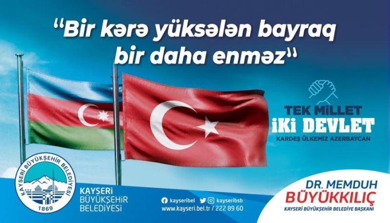 Ermenistan’ın ateşkesi ihlal ederek Azerbaycan topraklarına saldırması üzerine şehrin her köşesinde Azerbaycan halkına destek veren Kayseri Büyükşehir Belediye Başkanı Dr. Memduh Büyükkılıç, Kayseri Kalesi’ne Azerbaycan ve Türkiye Bayraklarını yan yana asılmasını sağlayarak, Azerbaycan’ın haklı davasında daima yanında olduklarının mesajını verdi. Ayrıca Başkan Büyükkılıç’ın talimatlarıyla 'İki devlet tek millet' bilboardlarıyla şehir donatıldı. Başkan Büyükkılıç, “Birlik ve beraberliğimizi, dayanışma ile perçinleyerek kardeşlerimizin her zaman yanlarında olacağız” dedi.