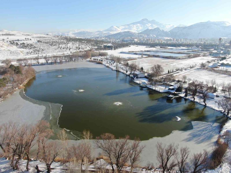 Kayseri’nin Kocasinan ilçesinde bulunan Şeker Gölü, yağan kar ile beraber güzel görüntüler oluşturdu.