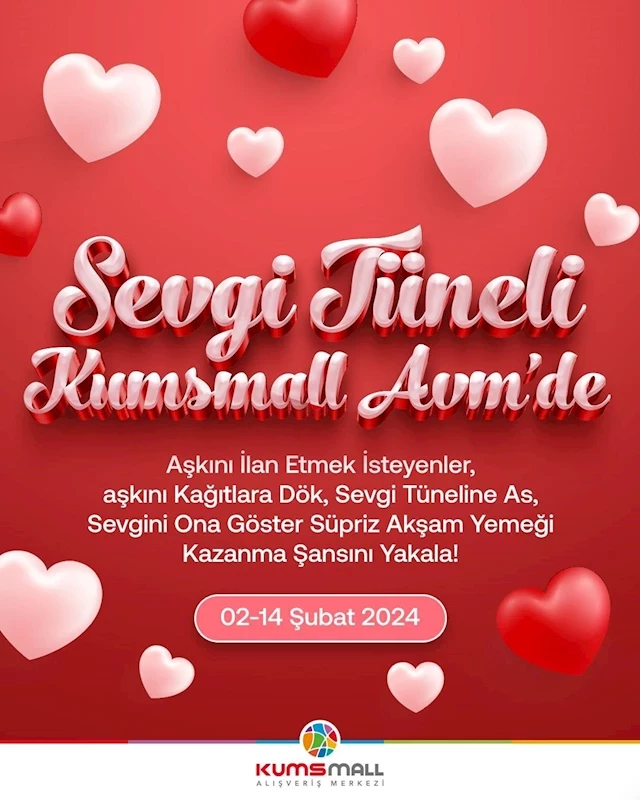 KUMSmall AVM içerisine kırmızı duvarlarıyla dikkat çeken Sevgi Tüneli kuruldu. KUMSmall ziyaretçileri bu tünele girerek sevdiklerine yazdıkları en güzel notları tünelin kırmızı duvarlarına asıyorlar. Sevgi Tüneli 14 Şubat Sevgililer Günü’ne kadar insanların hissettikleri en güzel duygu olan sevginin binlerce şekilde anlatımına ev sahipliği yapacak.