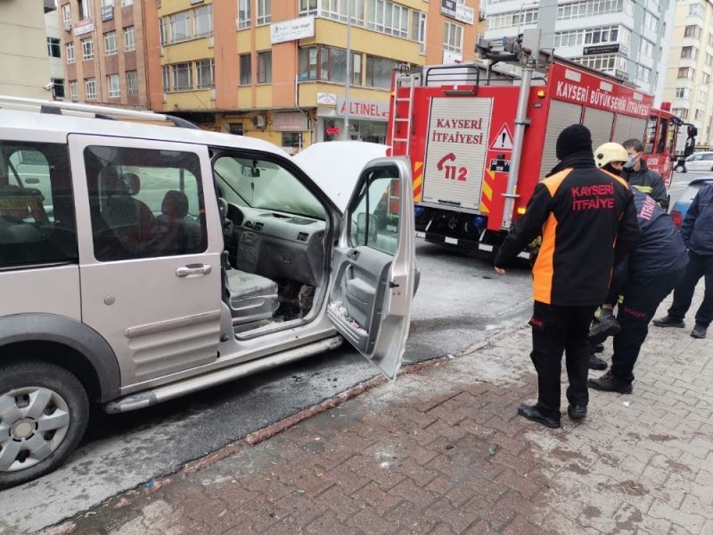 Kayseri’nin Kocasinan ilçesinde seyir halindeyken alev alan hafif ticari araç itfaiye ekipleri tarafından söndürüldü.