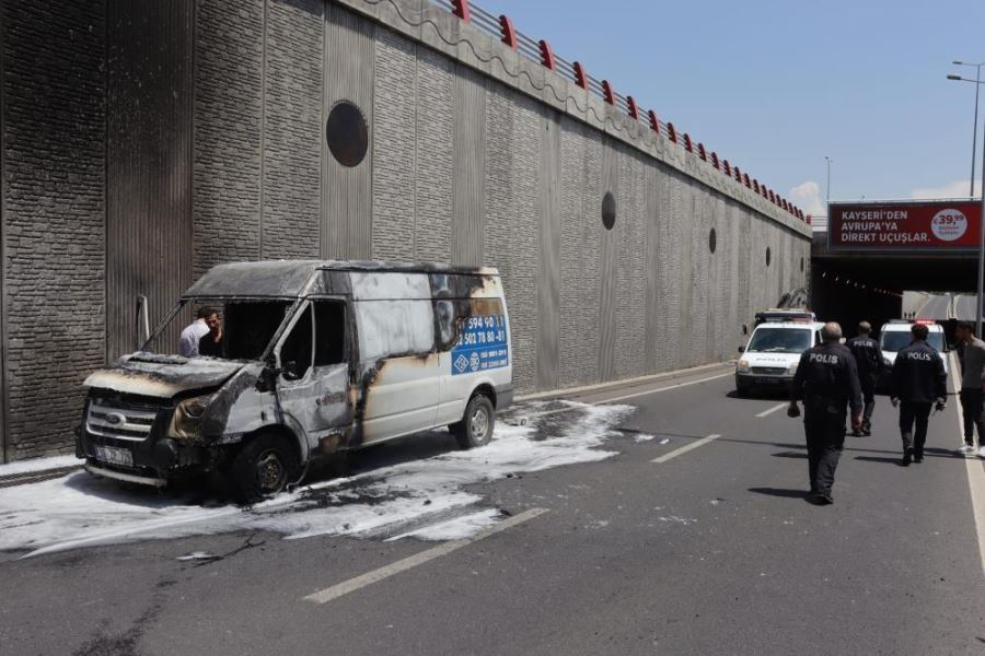 Edinilen bilgiye göre, ilçeye bağlı Şeker Mahallesi Osman Kavuncu Bulvarı üzerinde bulunan alt geçitte meydana gelen olayda, Erhan Dağlı (38) yönetimindeki 38 ZP 729 plakalı kamyonet seyir halindeyken henüz bilinmeyen bir sebepten dolayı alev aldı. Durumu fark eden sürücü aracı terk ederken, ihbar üzerine bölgeye polis ve itfaiye ekipleri sevk edildi. Polis ekipleri çevrede güvenlik önlemi alıp, alt geçidi trafiğe kapatırken, itfaiye ekipleri de araçtan yükselen alevlere müdahale etti. Çıkan yangın ekiplerin müdahalesiyle kısa sürede söndürüldü. Polis ekipleri de kullanılamaz hale gelen araçta inceleme yaptı.