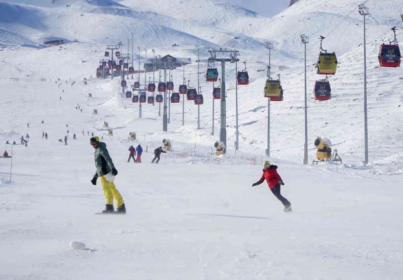 Kış turizminin merkezi Erciyes’te kayak sezonunun açılmasının ardından yerli ve yabancı turistler, kayak yapmanın tadını çıkarıyor.