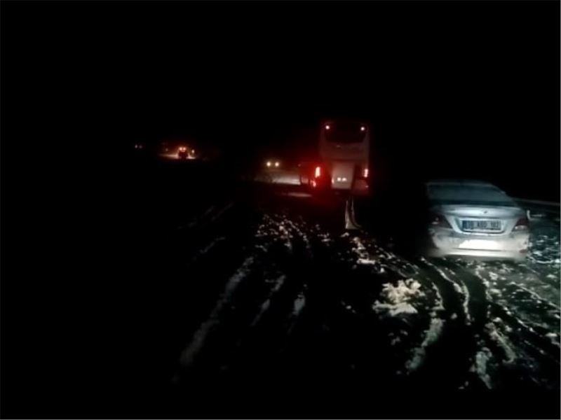 Kayseri-Malatya karayolu üzerinde etkili olan şiddetli kar yağışı ve tipi nedeniyle ulaşım sağlanamazken birçok araç yolda mahsur kaldı.