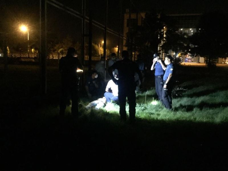 Kayseri'de silahlı yaralama ihbarına giden polisler, bir futbol sahasının yanındaki boş alanda el fenerleri ile yaralı şahıs aradı. Polis ekiplerinin yaptığı aramalarda alkol alarak kendinden geçen bir şahıs bulundu.