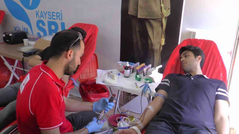 Kayseri’de bulunan bir lisede geleneksel olarak düzenlenen ‘Kan Ver Can Ver’ etkinliğinde, okul yönetimi ve öğrenciler kan bağışında bulundu.