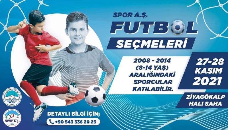 Kayseri Büyükşehir Belediyesi Spor A.Ş., futbol seçmeleri yaparak geleceğin yıldızlarını bünyesine katacak.