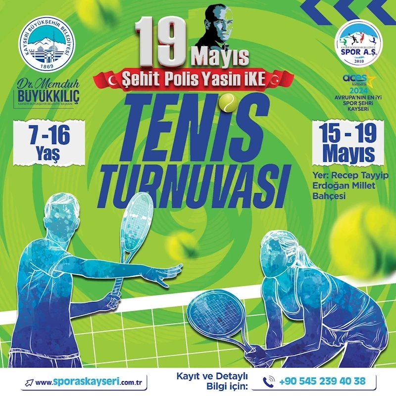 Kayseri Büyükşehir Belediyesi Spor A.Ş. tarafından düzenlenecek 19 Mayıs Şehit Polis Yasin İke Tenis Turnuvası kayıtları başladı.