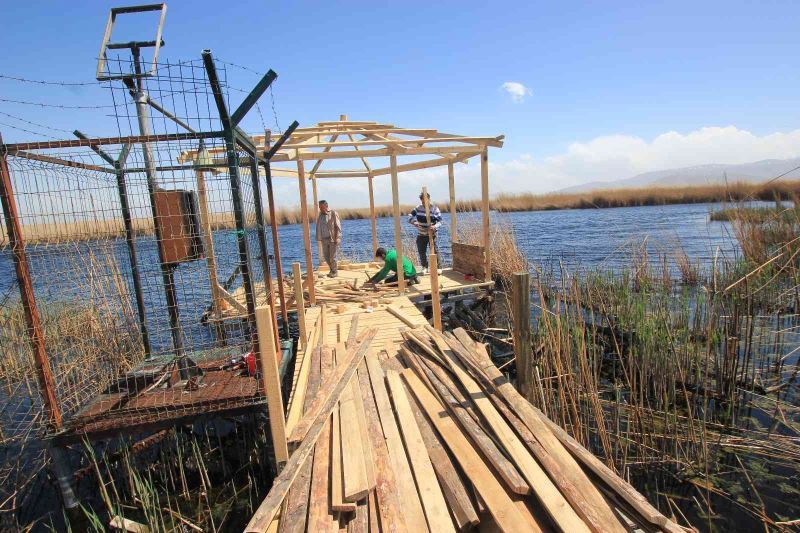 Milli park ilan edilen Sultan Sazlığı’nda geçtiğimiz günlerde çıkan yangında zarar gören alanlar tamir ediliyor.
