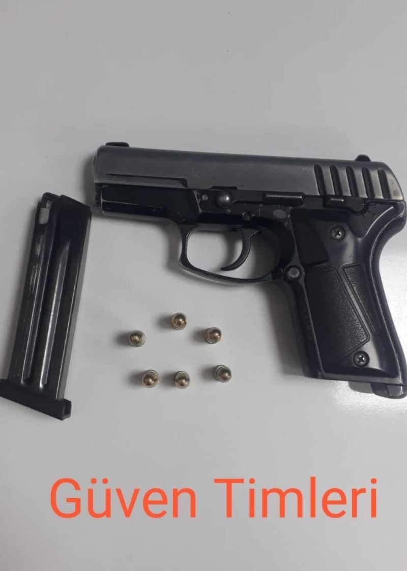 Edinilen bilgiye göre; Güven Timleri Büro Amirliği ekipleri; Battalgazi Mahallesi Hacı Bektaş Veli Caddesi üzerinde şüphe üzerine B.Ö.’yü durdurarak arama yaptı. Yapılan aramada 1 adet ruhsatsız tabanca ele geçirilirken ayrıca tabancaya ait 6 adet fişeğe de el konuldu.
