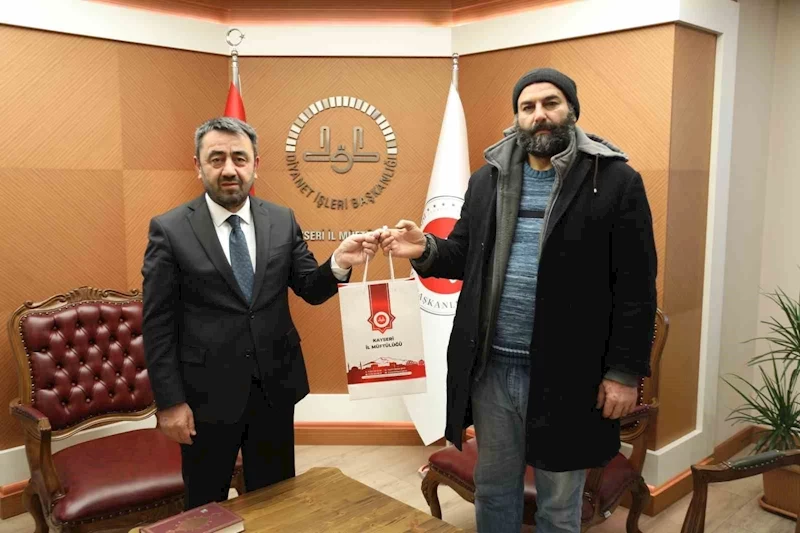 Melikgazi ilçesine bağlı Osmanlı Mahallesi’nde oturan ve nakliye işi ile geçimini sağlayan 45 yaşındaki ve 13 çocuk babası Ali Ezrak, yolda bulduğu ve içerisinde 2 bin dolar, 2 bin 750 TL ve 2 adet çeyrek altın bulunan çantayı mahallerinde bulunan Pakize Çiflikçioğlu Camii İmam Hatibi Hüseyin Mustafa Özler’e teslim etti. Para dolu çanta sahibi bulunarak teslim edilirken, İl Müftüsü Durmuş Ayvaz da, Ali Ezrak ile Pakize Çiflikçioğlu Camii İmam Hatibi Hüseyin Mustafa Özler’i makamında ağırladı. Olayı anlatan Pakize Çiflikçioğlu Camii İmam Hatibi Hüseyin Mustafa Özler, “Osmanlı Mahallemizde ikamet eden Suriye Vatandaşı Ali Ezrak içerisinde yüklü miktarda para ve 2 adet çeyrek altın bulunan parayı camimize getirerek bizlere teslim etti. Aynı gün içerisinde çanta kaybettiğini ve içerisinde bulunan para miktarını ve altının adedini doğru olarak söyleyen Türk vatandaşı aileye çantayı teslim ettim" dedi.