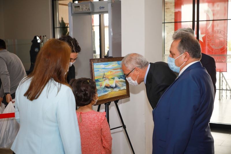 Kaymakam Dönmez ve Başkan Yalçın, daha sonra sergiyi hazırlayan çocuklara günün anısına çeşitli hediyeler verdi. Talas Belediyesi girişinde hazırlanan sergide yağlı boya ve kabartma 22 tablo ile çok sayıda el işi çalışma bulunuyor.