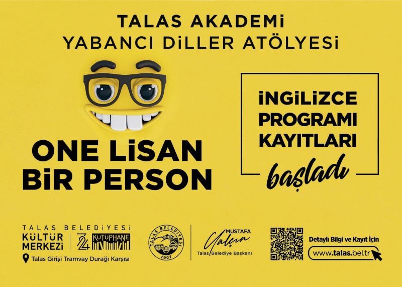 “One Lisan Bir Person” sloganıyla ücretsiz olarak başlatılan kursta alanında uzman Türk ve yabancı hocalar tarafından dil eğitimi verilecek. Talas Belediyesi Kültür Merkezi ve 7/24 Kütüphane’de gerçekleşecek olan kursa kayıt yaptırmak ve kurs hakkında detaylı bilgi almak isteyenler www.talas.bel.tr adresini ziyaret edebilirler. Vatandaşlar ayrıca belediye sosyal medya hesaplarından paylaşılan ilan üzerindeki barkodu okutarak da detaylı bilgi ve kayıt ekranına erişebilir.