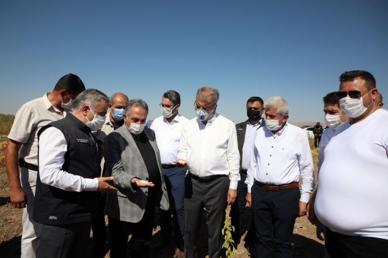 Bakan Yıldız, Başkan Yalçın ve beraberindekiler, daha sonra patosa sap atarak hasat çalışmasını başlattı, ardından da tarım işçilerini ziyaret ederek kısa süreli sohbetler gerçekleştirdi. (İHA) -