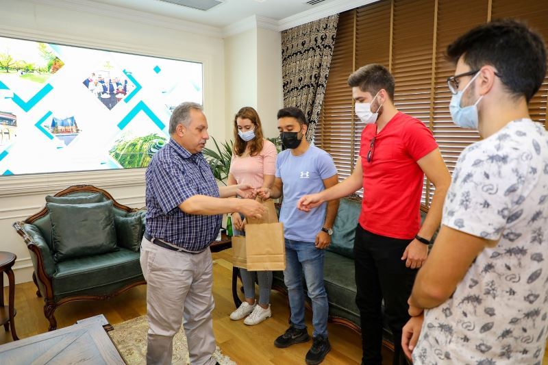 Başarılarından dolayı gençleri tebrik eden Başkan Yalçın, teşekkür etmenin erdemine değinerek, “Sizler teşekkür etmek için buraya kadar geldiniz, ben de bu medeni cesaretinizden ve göstermiş olduğunuz erdemden dolayı teşekkür ediyorum, sizleri tebrik ediyorum. Teşekkür etmek bir erdemdir. Öncelikle sizin çalışmanız, aileniz ve öğretmenleriniz etkili ama çalışma ortamını ve konforlu bir ortamı sağlamaya çalıştık. Sizi tebrik ederim” dedi.