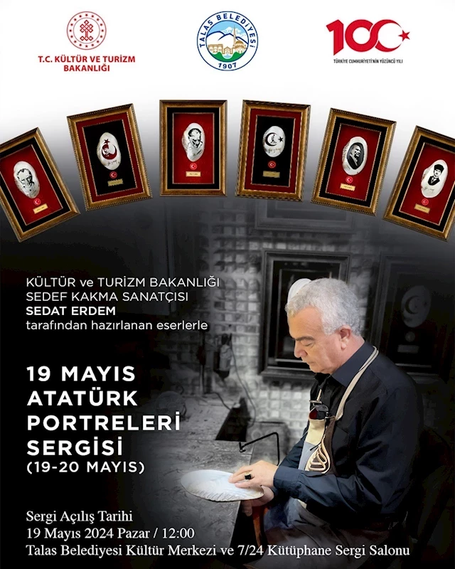 Talas Belediyesi 19 Mayıs Atatürk’ü Anma Gençlik ve Spor Bayramı etkinlikleri kapsamında Atatürk Portreleri Sergisi açacak.