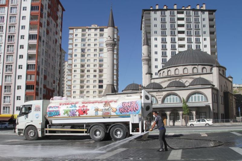 Bu kapsamda toplamda 39 noktada temizlik ve dezenfeksiyon çalışması yapılırken namaz sırasında sosyal mesafenin korunması için de şahısların namaza duracağı alanlar çizgilerle belirlendi.