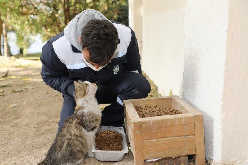 Talas’ta sokak hayvanlarını özel ekip besliyor