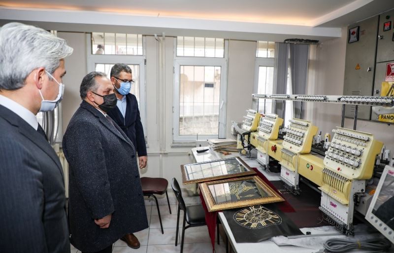 Merkezi gezen Başkan Yalçın ve beraberindekiler burada kurslar hakkında bilgi alırken, kursiyerlerle de sohbet etti.