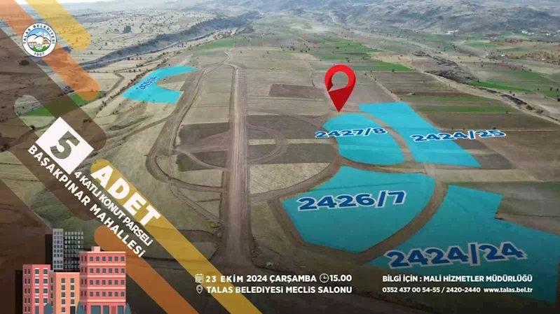 Talas Belediyesi’nin Başakpınar Mahallesi’nde 5 parça 4 katlı konut arsası, Reşadiye’de 2 villa parseli ve Harman Mahallesi’nde 1 dairenin satışını yapacağı ihalelerine sayılı saatler kaldı. 23 Ekim Çarşamba günü gerçekleştirilecek ihalelerden elde edilecek gelir ise belediyenin yeni yatırımlarında kullanılacak.