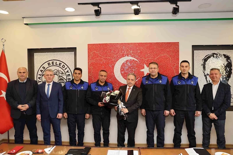 Talas Belediye Başkanı Mustafa Yalçın, görevde yükselme sınavını kazanarak zabıta komiseri olmaya hak kazanan zabıta personellerine rozetlerini taktı.