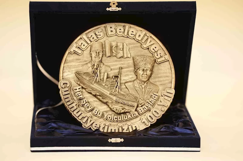 Konuya ilişkin kısa bir değerlendirme yapan Talas Belediye Başkanı Mustafa Yalçın, çok önemli bir dönüm noktasına şahitlik ettiklerine işaret ederek, “Türkiye Cumhuriyetinin kuruluşunun 100. yılını yaşıyoruz. Bu, bizim için büyük bir şans ve aynı zamanda gurur kaynağı. Bu önemli anı hatırlatmak ve canlı tutmak amacıyla çeşitli hatıra eşyalar yaptırdık. Hem Cumhuriyetimize hem de Talas’ımıza çok yakıştı.” dedi.