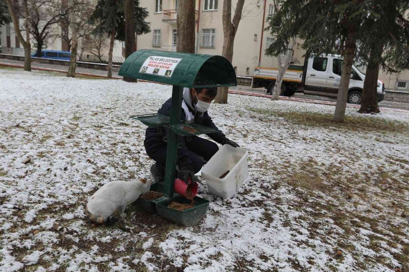Bu kapsamda Talas genelindeki 40 ayrı bölgede bulunan besleme noktalarına kuru mama, yemek ve ekmek bırakılıyor. Böylece kışın zorlu şartlarında kedi ve köpeklerin yiyecek bulması kolaylaştırılıyor ve ayrıca yaban hayvanlarının aç kalarak yerleşim yerlerine inmesinin önüne geçiliyor.