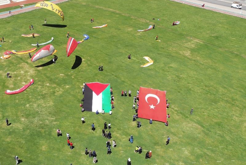 İsrail’in Kudüs ve Gazze’de gerçekleştirdiği katliama tepkiler sürüyor. Bu kapsamda Talas Belediye Başkanı Mustafa Yalçın öncülüğünde Yamaç Paraşütü İniş Alanı’nda bir program düzenlendi. Talas Belediyesi, Türk Kızılayı Talas Şubesi ve Beytülmakdis Eğitim ve Yardımlaşma Derneği işbirliğinde İsrail’in gerçekleştirdiği saldırılar kınandı, Filistin’e destek açıklamaları yapıldı.