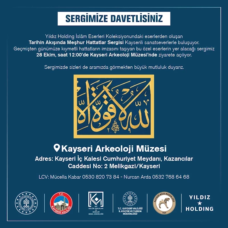 Yıldız Holding İslam Eserleri Koleksiyonu’nda yer alan ve aralarında birbirinden değerli hüsn-i hat eserlerinin de yer aldığı eserler, ’Tarihin Akışında Meşhur Hattatlar’ sergisiyle Kayserili sanatseverlerin beğenisine sunuluyor.