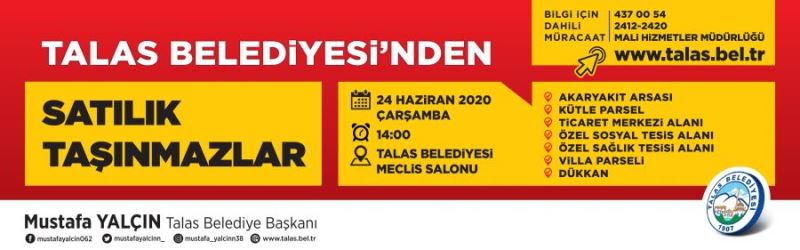 İhalelerle ilgili Talas Belediyesi Mali Hizmetler Müdürlüğü’nün 0352 437 00 54/2412-2420 numaralı telefonlarından ve www.talas.bel.tr adresinden bilgi almak mümkün olacak. (İHA)