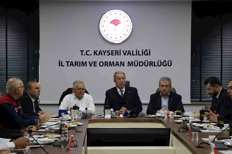 TBMM Milli Savunma Komisyonu Başkanı ve AK Parti Kayseri Milletvekili Hulusi Akar, İl Tarım ve Orman Müdürlüğü’nü ziyaret ederek, geçtiğimiz günlerde kentte meydana gelen don olayları ile ilgili İl Tarım ve Orman Müdürü Bülent Saklav’dan yapılan çalışmalar hakkında bilgiler aldı. Toplantının ardından konuşan Akar, "Her ülkenin ve her milletin olmazsa olmazı savunma ve güvenliktir. Savunma ve güvenlik bizim için çok önemlidir. Bu yapılırken diğer taraftan da insanların yemesi, içmesi, rahatı, huzuru ve refahı da çok önemlidir. En büyük savunma ve güvenlik konusu herkesin tok ve rahat içinde olması. Tarım ve ormanla alakalı yapılan çalışmalarda bunu kapsamaktadır. 86 milyon vatandaşımızın refahı için, 86 milyon için gayret gösteriyoruz. Kayseri sanayi, ticaret ve turizm şehri diyoruz ama Kayseri aynı zamanda ciddi bir tarım ve hayvancılık şehri. Zirai ürünlerde Kayseri’nin ilk 10’da olması da bunu açık bir göstergesidir. Bununla yetinmeyeceğiz. Çalışmalarımızı artan bir gayretle yapacağız. Bu devletin ve milletin işidir. Bunu yaptığımız zaman ki insanların mutluluğu bizim en büyük sevincimiz" ifadelerini kullandı.