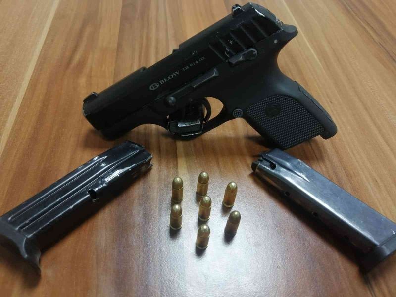 Öte yandan, evde yapılan aramalarda 1 adet tabanca, 3 adet şarjör ve tabanca üzerinde takılı olan şarjör içerisinde 7 adet dolu mermi ele geçirildi.