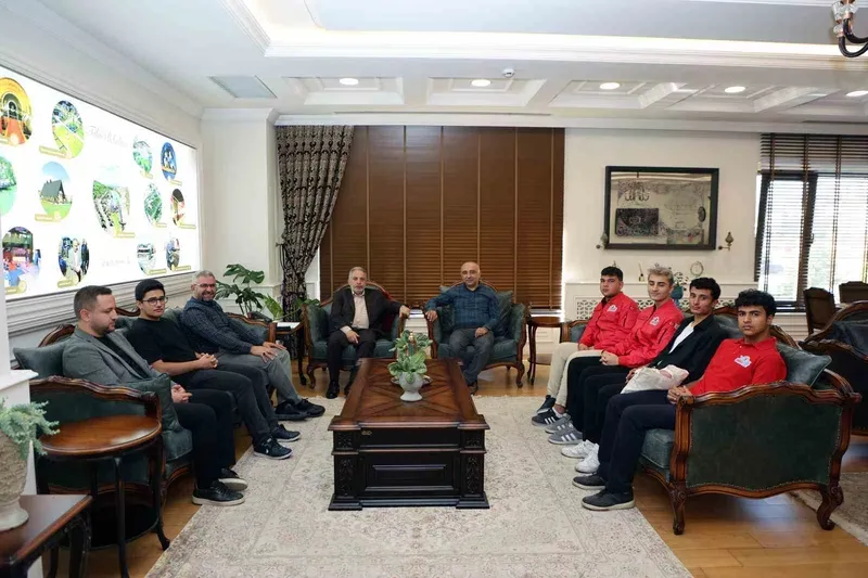 Talas Belediyesi Espor ve İnovasyon Merkezi’nde eğitim alan Hürriyet Mesleki ve Teknik Anadolu Lisesi öğrencileri, TEKNOFEST Kıbrıs’ta elde ettikleri başarıları paylaşmak ve teşekkürlerini iletmek üzere Talas Belediye Başkanı Mustafa Yalçın’ı makamında ziyaret etti.