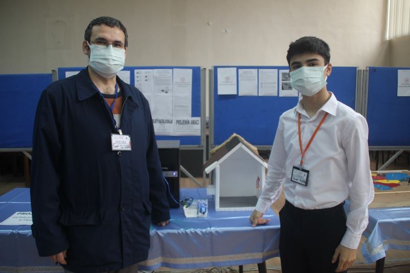 Kayseri Merkez Mesleki ve Teknik Anadolu Lisesi öğrencisi Samet Akdoğan, Danışman Öğretmen Sedat Yıldızdoğan ile birlikte çocukların yüksekten düşmesini engellemek için bir proje geliştirdi. Geliştirdiği projeyi TÜBİTAK Bilim Fuarı’nda sergileyen Akdoğan, "Bu projemizde haberlerde sıklıkla duyduğumuz, çocukların balkondan ve yüksek kattan düşmeleri ile ilgili ebeveynleri bilgilendirmek için kurduk. Bu sistemde ultrasonik sinyalimiz var. Çocuklar 10 metre kadar bu alana yaklaştığında öterek ebeveynleri uyarıyor. Bu projeyi yapmak 3 ayımızı aldı. Dönemin başından beri çalışıyoruz. Bu projenin üzerinde çok çalıştık. Bu projemizi biraz daha geliştirmeyi düşünüyoruz. Ötmesiyle birlikte telefonumuza bildirim gelmesi yönünde geliştirmeyi düşünüyoruz. Hedeflerimizde bu projeyi TÜBİTAK’a sunmak var. Bu projeyi bilerek atlayan insanlar için de kullanabiliriz. Bu bizim gerçekten çok emek verip, üzerinde çalıştığımız bir projedir. Milletimiz için faydalı olur inşallah” ifadelerini kullandı.