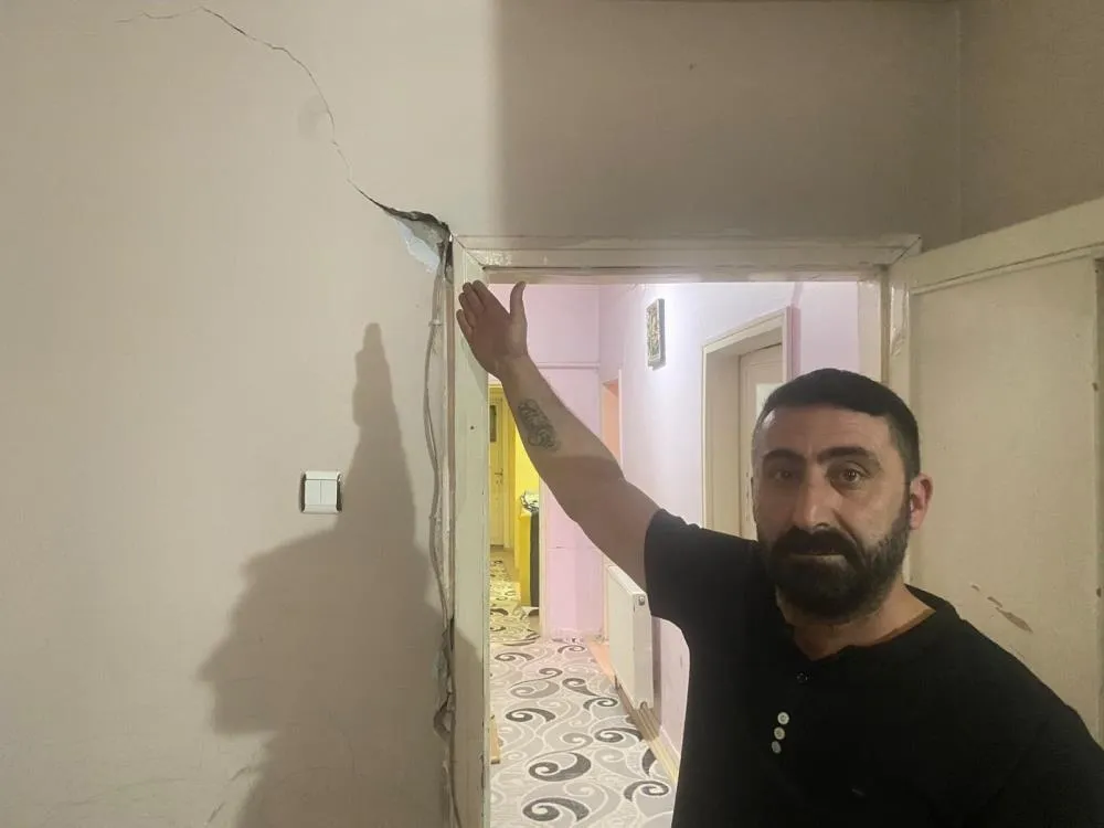 İddiaya göre, Kayseri’nin Kocasinan ilçesine bağlı Mevlana Mahallesi Havuzbaşı Sokak’ta bulunan 3 katlı bir ikamette de hasra meydana geldi. Tokat Sulusaray merkezli depremde evinin duvarlarında ve kolonlarında çatlak meydana geldiğini söyleyen Yakupoğlu, “Bugünkü depremde benim evim bu hale geldi. Yetkililerden gelip, evimize bakmalarını istiyoruz. En azından riskli olup, olmadığımızı bilmek istiyoruz. Çocuklarımla birlikte korku içerisindeyiz. Ben maddi olarak bir yardım da talep etmiyorum. Sadece risk altında olup, olmadığımızın cevabını bize versinler. Rahatlık içerisinde evimizde oturalım. Ben marketteydim. Eşim ve çocuklarım beni aradılar. ‘Baba deprem oldu’ dediler. Benim büyük kızım, telefonunu almak için eve girdiğinde evin bu hale geldiğini söyleyerek, fotoğraf attılar. Biz evimizde korku içerisinde oturuyoruz. Yetkililerden biz herhangi bir maddi yardım talep etmiyoruz. Sadece gelip, evimize bakarak riskli olup, olmadığına bakmalarını istiyoruz. Başka herhangi bir isteğimiz yok” ifadelerini kullandı.