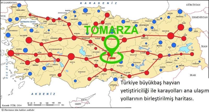Gürbüz, "Tomarza konumu itibariyle bölge canlı hayvan pazarı olmaya en uygun noktada, ülkenin doğu batı, kuzey ve güney noktalarına hemen hemen eşit mesafededir. Bu durumu izah etmek için karayollarının ana ulaşım ağları ile büyük çaplı canlı hayvan yetiştiren illerin haritasını kırmızı renkle birleştirdim. Değerli Tomarzalı hemşerilerimizde bu haritaya bakınca muhtemelen bana hak vereceklerdir" diye konuştu.