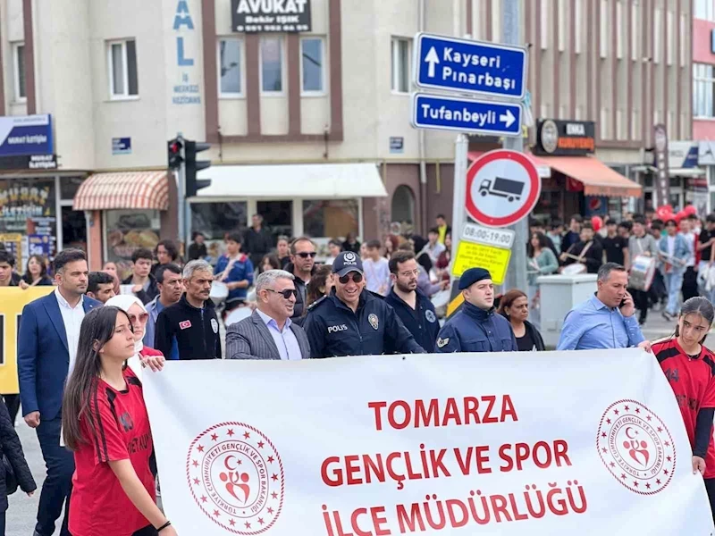 Kayseri’nin Tomarza İlçesinde; 19 Mayıs Atatürk’ü Anma ve Gençlik ve Spor Bayramı ile 15-21 Mayıs tarihleri arasında kutlanacak olan Gençlik Haftası kapsamında ’Atatürk’ü Anma-Gençlik Yürüyüşü’ düzelendi.