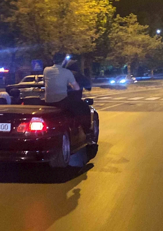 Çorakçılar mahallesi Şehit Miralay Nazım Bey Bulvarı üzerinde seyir halindeki bir otomobili görenler şaşkınlıklarını gizleyemedi. Üstü açık otomobilde tek bacakları dışarda seyreden 2 kişi, yürekleri ağza getirdi. Tehlikeye aldırış etmeden hızla giden otomobilde kimi zaman tehlikeli hareketler de yapan şahıslar bir başka sürücü tarafından cep telefonu ile kaydedildi.