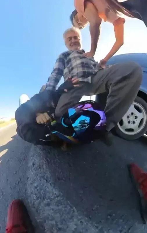 Edinilen bilgiye göre, Talas ilçesinde trafikte ’yol verme’ yüzünden kadın motosiklet sürücüsü G.N.Ö. (24) ile bir kadın arasında tartışma çıktı. Tartışmanın büyümesi üzerine araçtan inen sürücü M.D. (64), kadın motosiklet sürücüsünü darbetti. Bunun üzerine erkek arkadaşı H.M.’ye (23) haber veren genç kadın, aracı takibe başladı. H.M., aracı park ettiği sırada M.D.’ye saldırarak darbetti. Yaşananlar kameraya yansırken, Kayseri İl Emniyet Müdürlüğü ekipleri H.M. ve M.D.’yi yakalayarak gözaltına aldı. Haklarında adli işlem başlatılan şüpheliler emniyete götürüldü.