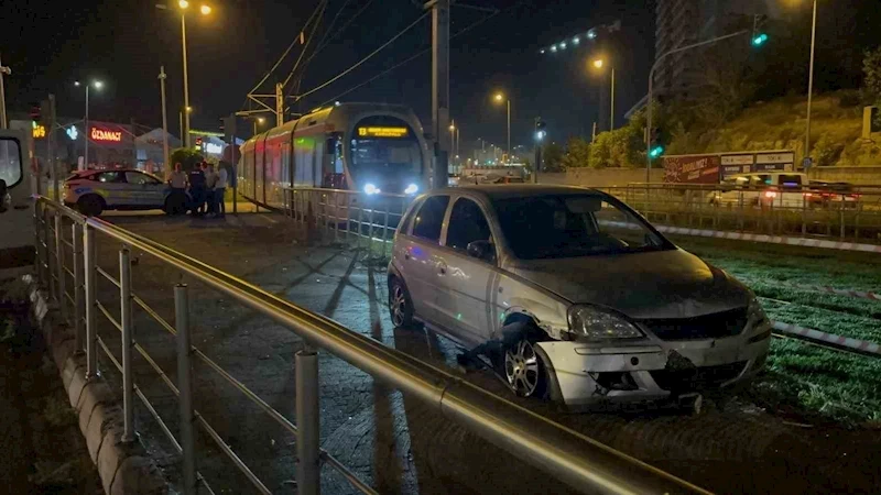 Tramvay yoluna giren alkollü sürücü önce kaçtı sonra geri geldi