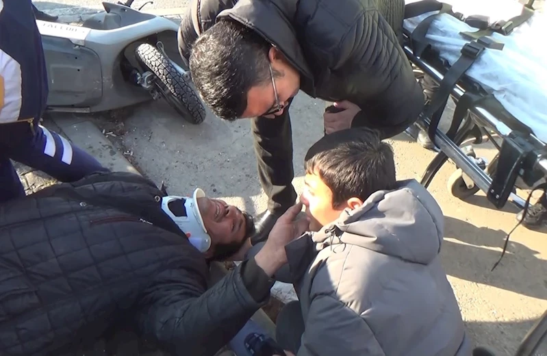 Kayseri’de tramvay ile çarpışan mobilette yaralanan sürücü arkadaki oğlunu ’yürüyebiliyor musun oğlum’ diyerek teselli etti.