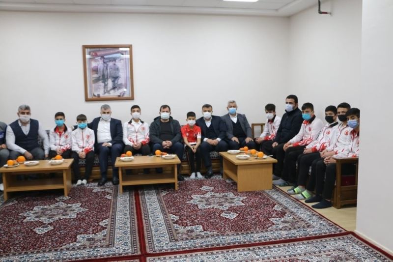 Vali Yardımcısı Mehmet Sadık Tunç ile Gençlik ve Spor İl Müdürü Ali İhsan Kabakcı, Kayseri Güreş Eğitim Merkezi güreş sporcuları ile bir araya gelerek sohbet etti.