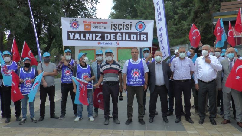 Türk Metal Sendikası, İstanbul merkezli Salcomp Xiaomi firmasında çalışan sendika üyelerinin işten çıkarılması ile ilgili tüm illerde eş zamanlı ortak basın açıklaması düzenledi. Türk Metal Sendikası Kayseri Şube Başkanı Ali Gökkaya da yaptığı basın açıklamasında, “Türk Metal Bayrağı Salcomp Xiaomi firmasına dikilene kadar mücadelemiz devam edecek” dedi.