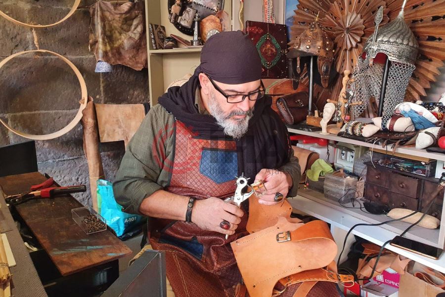 Kayseri’de 20 yıldır deriden tarihi kıyafet ve aksesuar üreten Mesut Coşkun, yaptığı Türk tarihine ait ürünler ile dizi karakterlerine can verirken, gençlerinde bu konuda bilgilenmesini sağlıyor.