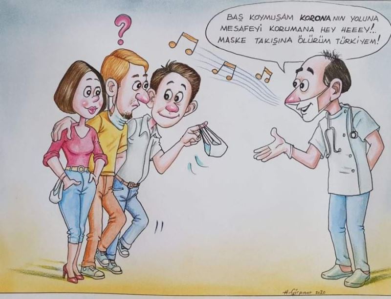 Ünlü ressamlardan Hasan Gürpınar, Türkiye'de de etkili olan koronavirüs salgınında maske kullanım şeklini eleştiren karikatürler ile vatandaşların dikkatini çekmeye çalıştı. ünlü ressamın karikatürleri büyük ilgi çekti.