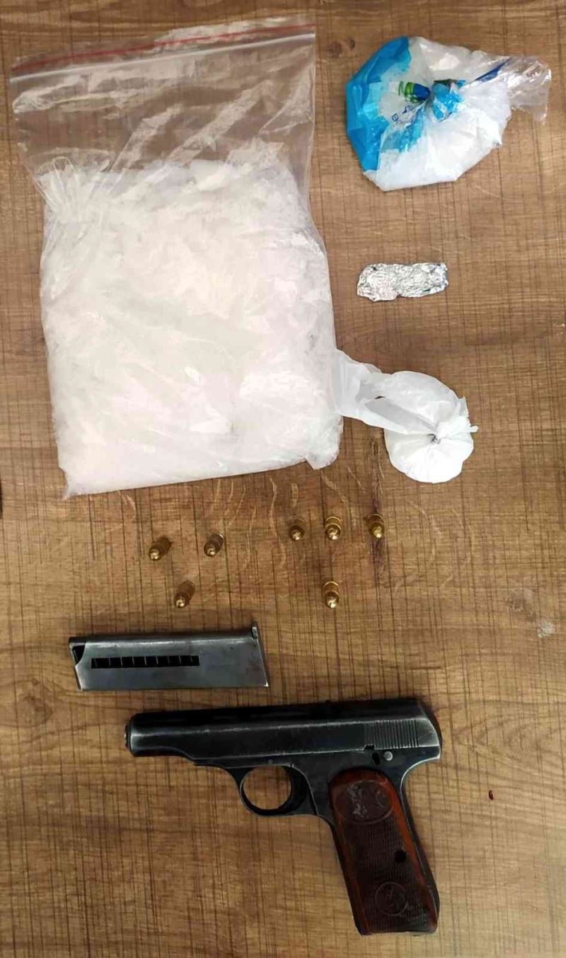 Edinilen bilgiye göre, Kayseri İl Emniyet Müdürlüğü Asayiş Şube Müdürlüğü’ne bağlı Motosikletli Polis Timleri Büro Amirliği ekipleri, Melikgazi ilçesine bağlı Kazım Karabekir Mahallesi’nde uygulama yaptı. Toros Geçidi üzerinde şüphe üzerine E.D.’nin (41) kullandığı 38 AEV 221 plakalı aracı durduran ekipler, arama yaptı. Şahsın üzerinde ve araçta yapılan aramada, kilitli şeffaf poşet içerisinde 200 gram metamfetamin, şeffaf poşet içerisinde 57.60 gram metamfetamin, küçük poşet içerisinde 11.45 gram metamfetamin, alüminyum folyoya sarılı vaziyette 0.85 gram metamfetamin, ayrıca marka ve seri numarası okunamayan 1 adet 7.65 milimetre çapında ruhsatsız tabanca ile 7 adet dolu fişek ele geçirildi.