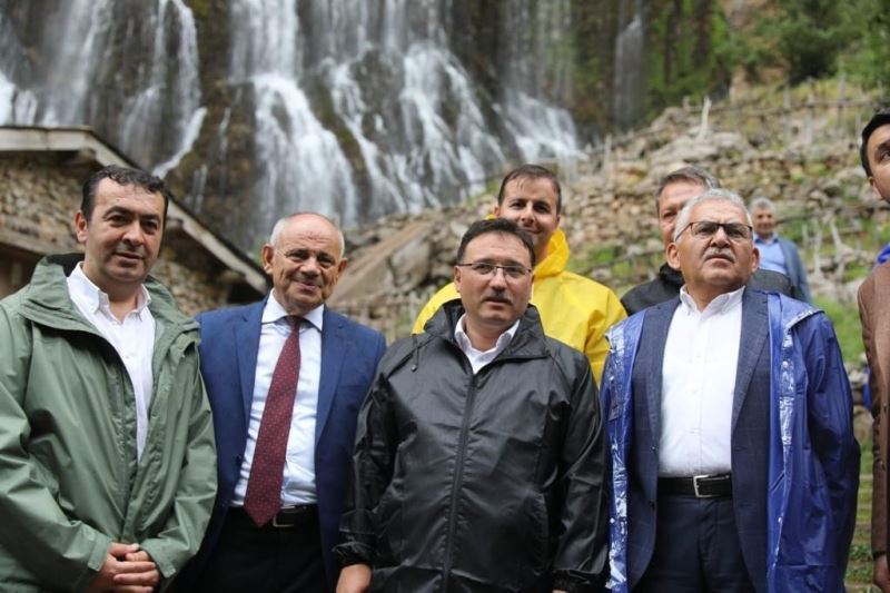 Vali Gökmen Çiçek, Derebağ Mahallesindeki İncelemelerinin ardından, Kapuzbaşı Mahallesini ve dünyanın en yüksekten dökülen ikinci şelalesi olan Kapuzbaşı takım şelalelerini ziyaret etti.